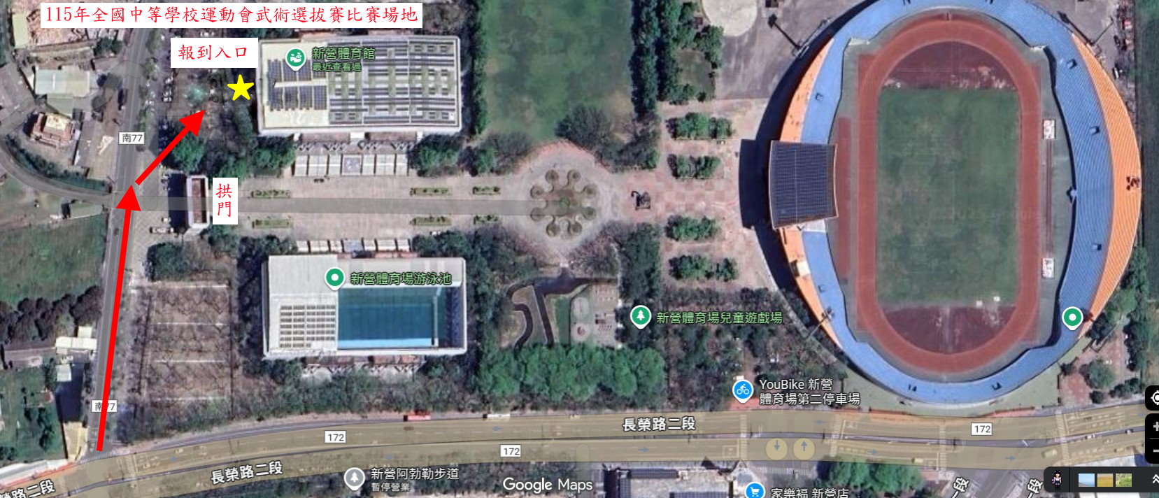 武術賽事日期原定11/29(星期日)調整至12/21(星期日)於新營體育場(羽球館樓下)辦理。